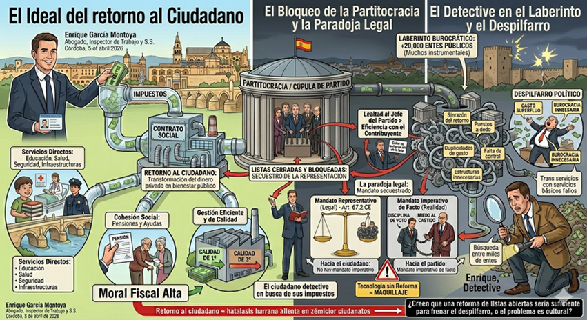 Podemos hablar de digitalización y control para fiscalizar las cuentas, pero sin una reforma electoral que devuelva el poder al ciudadano y penalice la mala gestión, la tecnología será solo un maquillaje, siendo el control real de las cuentas un imposible. La transparencia no es una opción ética, es una necesidad de supervivencia para nuestra democracia, ya que, mientras el ciudadano se sienta un <-investigador privado-> de sus propios impuestos en lugar de un beneficiario, la desafección y la fatiga fiscal seguirán creciendo.